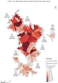 During Mayotte’s monsoon season, rain naturally causes erosion, and the soil released is carried into the sea as silt. With the volcano’s eruption and associated swarm of earthquakes, intensifying rains and poor land management have caused erosion to rise. Forty years ago, 5,000 tons of sediment was released annually; by 2018, the rate was 20,000 tons per year, an eightfold increase. The end result is a vast flow of soil into the lagoon.